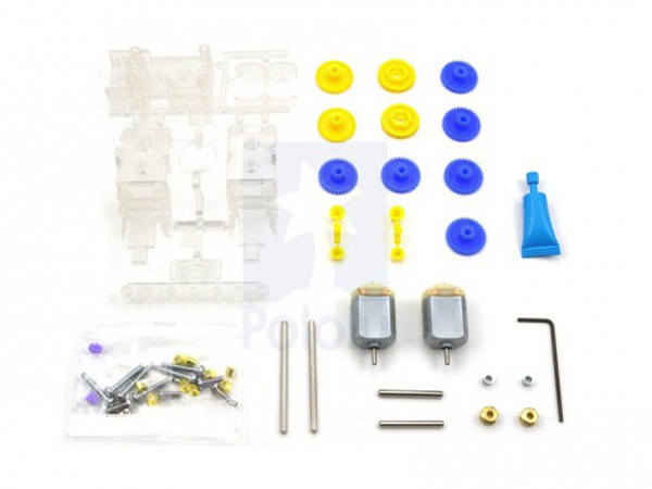 70168T Сборный редуктор с 2 эл.моторами (тип 130), передаточные отношения 12,7:1, 38,2:1, 114,7:1, 344,2:1 (независимое вращение левой и правой осей) Tamiya в Воронеже, купить в интернет-магазине, цены, фото