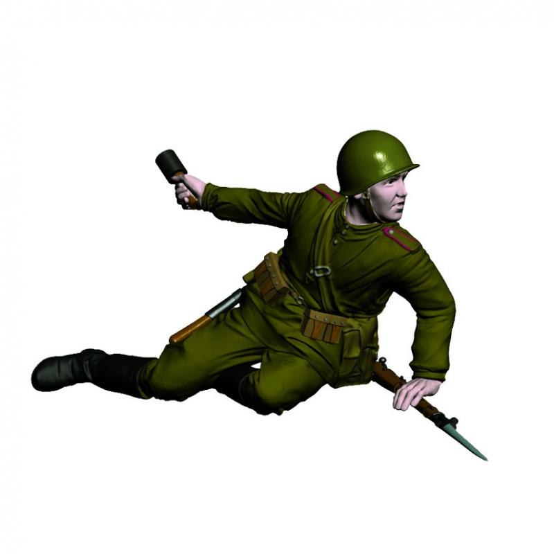 Отлично выполненные фигуры, разнообразные позы и вооружение. Уникальность этого набора в том, что он полностью повторяет советский взвод, согласно штатному расписанию на июль 1943 года. То есть количество фигур и их вооружение соответствует историческим реалиям.